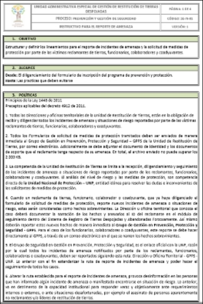 El Sistema Integrado de Planeación y Gestión de la UAEGRTD cuenta con varios tipos de documentos que permiten unificar el lenguaje y la forma de hacer las actividades al interior de la Unidad, logrando así mayor eficiencia y garantizando una atención oportuna a los reclamantes de tierras y territorios.