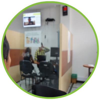 Atril de turnos de servicios (Orientación e información, Solicitud de inscripción, Servicios especializados, Radicación y otros servicios).