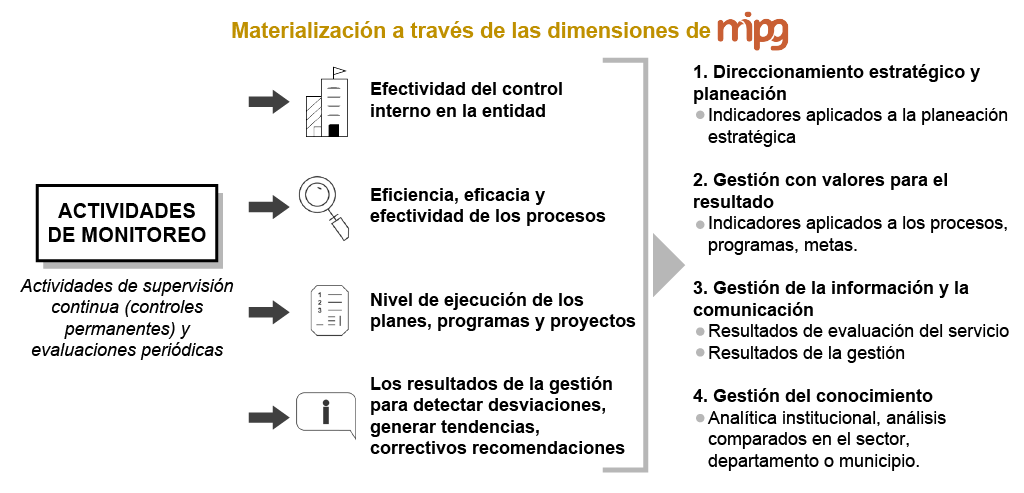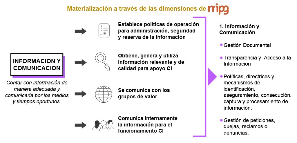 Con esta dimensión, y la implementación de la política que la integra, se logra cumplir el objetivo de MIPG “Desarrollar una cultura organizacional fundamentada en la información, el control y la evaluación, para la toma de decisiones y la mejora continua”.