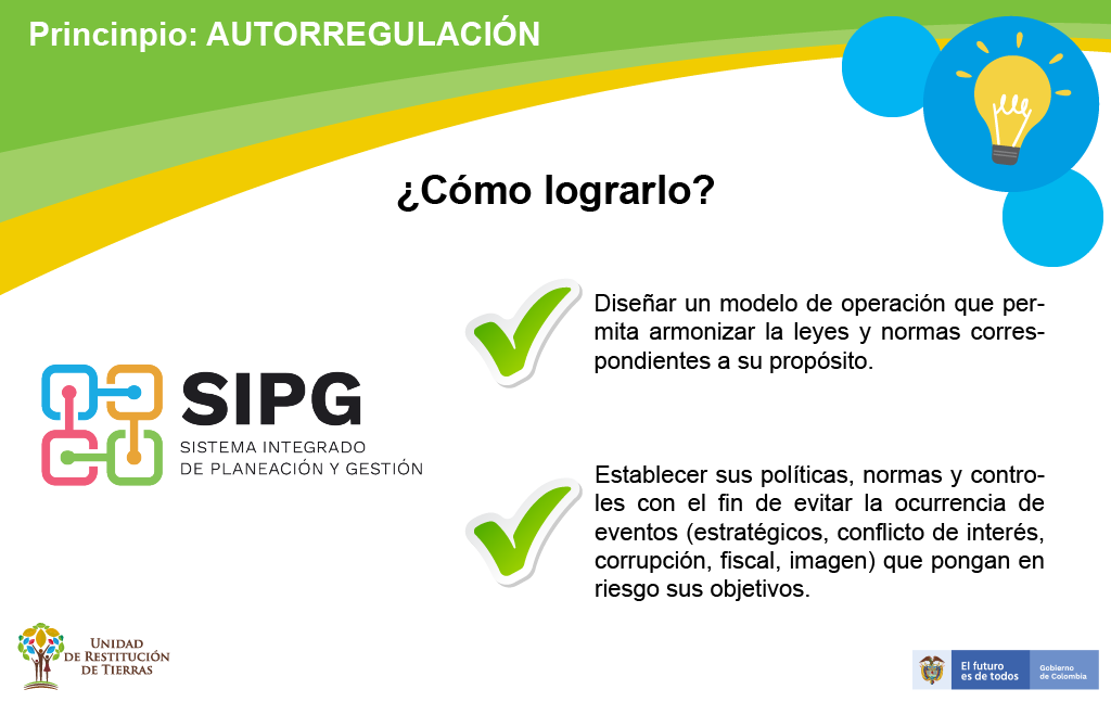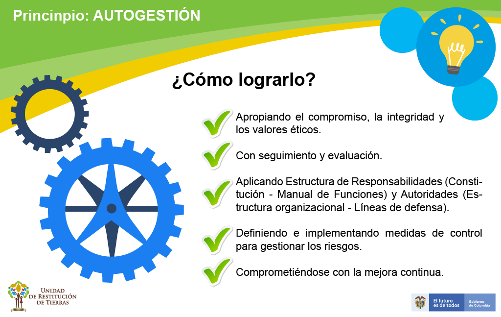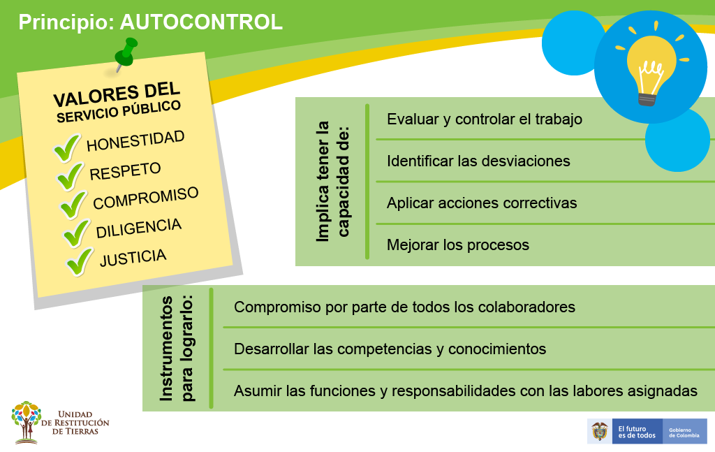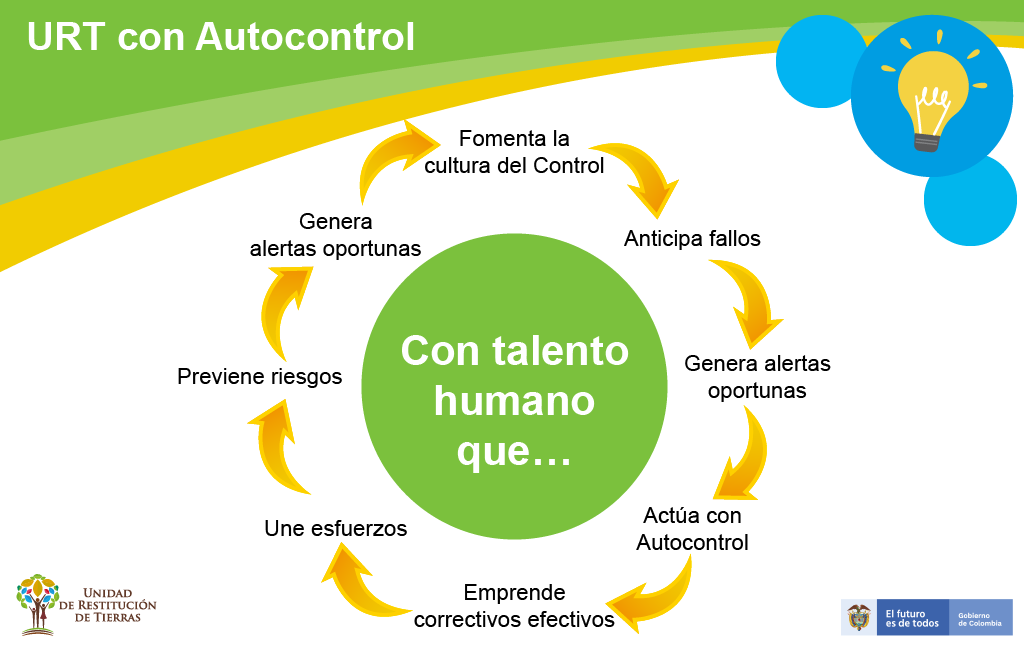Cada uno de los servidores de la URT se constituyen en parte integral de la implementación (AUTOCONTROL) de acciones, políticas, métodos, procedimientos, mecanismos de prevención, verificación y evaluación establecidos por los Lideres de los Procesos y la Alta Dirección, (AUTORREGULACION), para el cumplimiento de su Misión (AUTOGESTION).