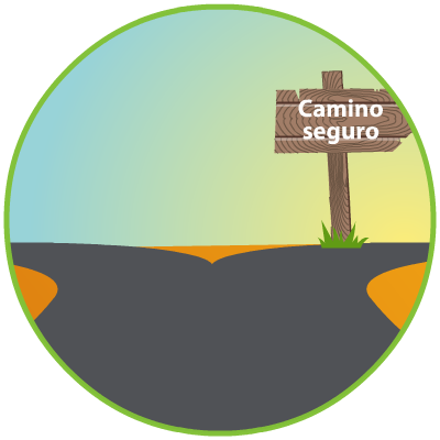 9. Al transitar por zonas de riesgo camina por el centro, evita bordes y cunetas, observa las pisadas o huellas de quienes van adelante, camina en fila india con separación de 1 metro entre personas y evita agrupamientos.