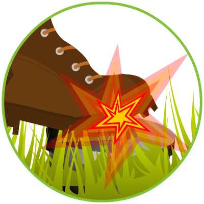 2. Considera que las minas pueden activarse si se pisan, se tocan, se arrojan, se cogen, se manipulan, se tocan sus partes o ante la presencia, proximidad o contacto de una persona o agente externo.
