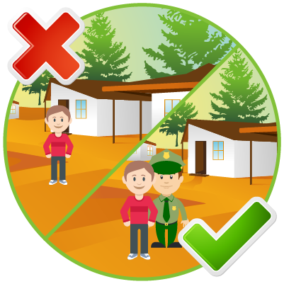 3. Efectuar PRESENTACIÓN ante el personal de la Fuerza Pública que brinda el acompañamiento al INICIO de la salida en terreno para los modelos de acompañamiento Directo y Barrido.