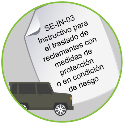 5. Para salidas a terreno bajo el modelo de acompañamiento de la Fuerza Pública de barrido o directo en terreno, el desplazamiento de reclamantes con medidas de protección o amenazas se realizará de acuerdo con el Instructivo para el traslado de reclamantes con medidas de protección o en condición de riesgo (SE-IN-03).