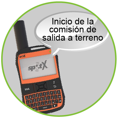 1. Reportar de manera inmediata por vía telefónica o a través del dispositivo localizador satelital personal GPS, el INICIO de la comisión de salida a terreno, al Profesional Territorial de Prevención y Seguridad y al C-4 del nivel central.