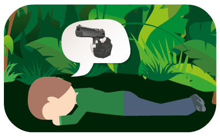 Si escuchas disparos, resguárdate detrás de obstáculos que reduzcan tu visibilidad. Si el espacio es abierto, tírate de cara al suelo y permanece allí hasta que el riesgo haya pasado.
